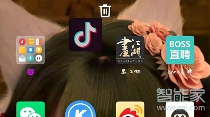 2.然后就会在屏幕上方出现垃圾桶的标志,直接把图标拖到上方垃圾桶里,