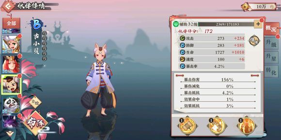 而且古小贝的拉条只能给四名角色,使用的时候也得注意。对比沙狐丞相的拉条虽然加成可能高点(古小贝对速度的加成不知道能不能包含装备和妖魂的效果,如果只是角色基础速度加成可能后期还不如丞相),但是丞相的拉条却是对全队的。