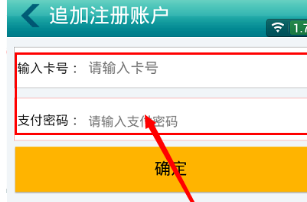 4.然后输入银行卡的卡号以及密码,点击确定就可以成功绑定了。