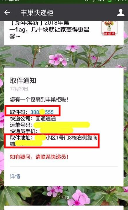 1、点击打开丰巢快递柜的公众号,就可以看到我们的快递信息了,取件码等。