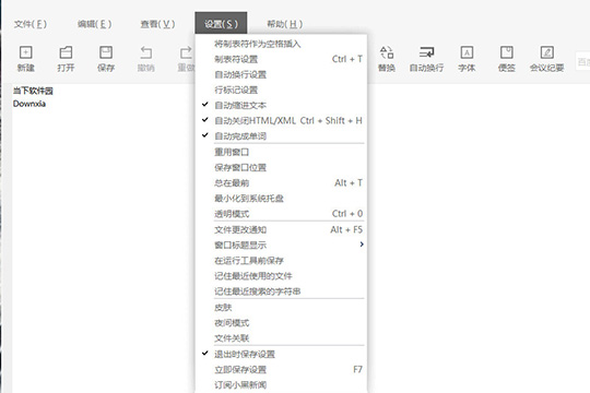 2、除了更改文本字体之外,你还可以开启自动换行;功能,在设置栏中自定义进行调节,包括将制表符作为空格插入、自动换行设置、是否自动缩进文本等设置,总体来说还是非常方便的,如下图所示: