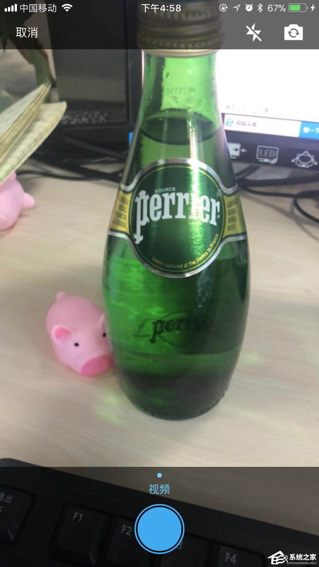 3、进去后,按住拍摄键,然后再等十秒就可以了拍完,如果中途想退出的话。则可以按着往上拉下。