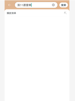 1、点击打开手机淘宝,然后搜索“双11愿望单”,点击进入。