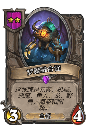 这张牌是元素,机械,恶魔,鱼人,龙,野兽,海盗和图腾。[*]