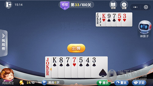 攻略:这一关比较简单,第一张先出一个5,记得把大王留着到后面有关键作用。