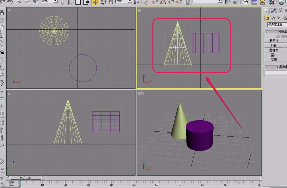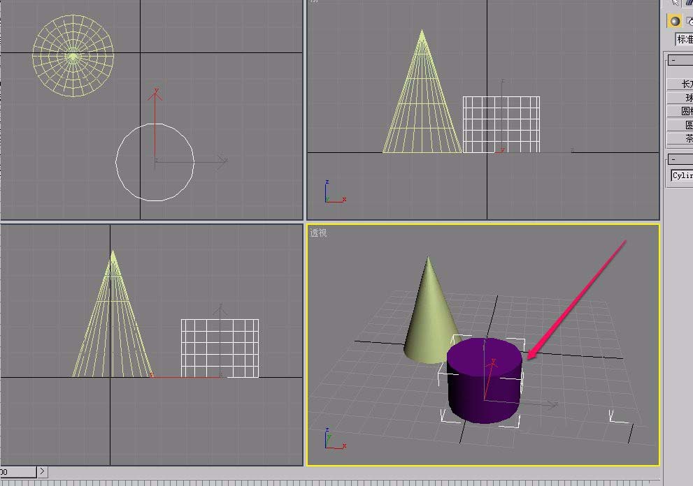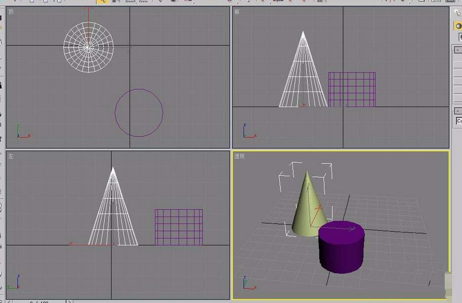 首先打开3Ds MAX软件,新建一个圆柱体和一个圆锥体。