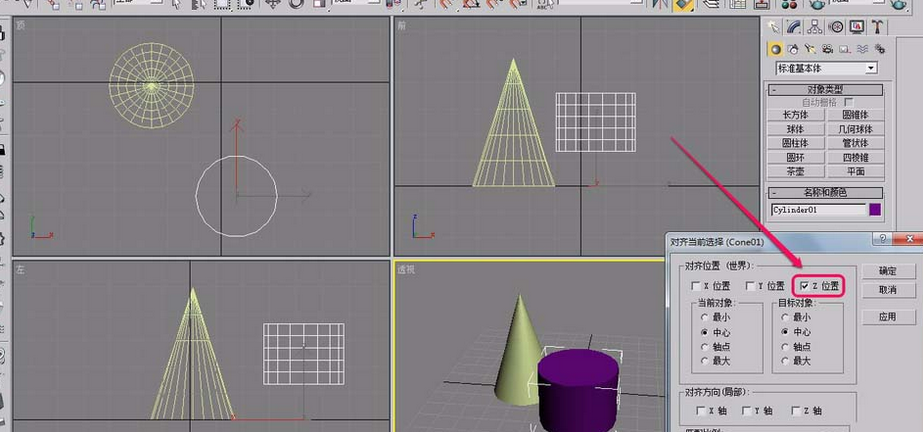 选择在z轴数值上的对齐,于是选择“对齐位置”中的“Z位置”。