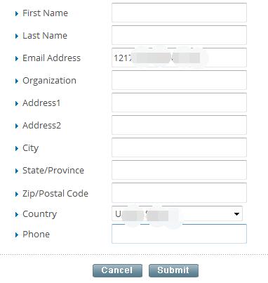 进行注册后,进入下一步,在新的注册窗口中完成我们的更详细的信息填写,包括用户名、组织、地址、城市、联系方式等。