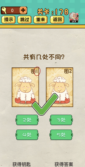 神脑洞游戏第178关的问题是:共有几处不同?这是一道考眼力的图片题,大家找对了有几处不同吗?下面赶快来看下正确答案,以及相对应的答案解析吧。