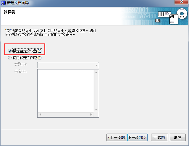 在“选择卷”中选定“指定自定义设置”,单击下一步;
