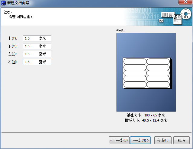 在指定标签大小的下面多了一个间距的调整项目,可供设置标签与标签之间的距离,单击下一步;