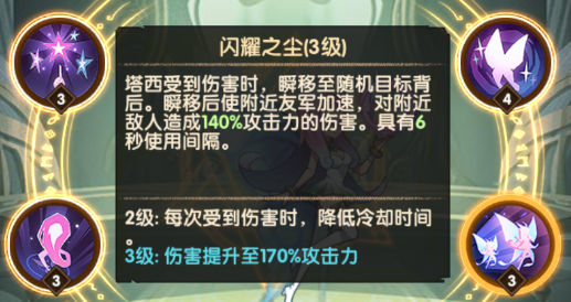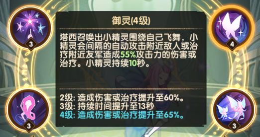 梦境守护塔西是一个绿裔联盟的英雄,他克制亡灵军团的英雄,被蛮血部族的英雄所克制,身为一个智力型英雄,擅长用魔法进行战斗,造成的所有伤害都是魔法伤害。