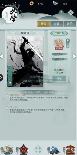 之后回去找老爷子送金银花,任务完成。最后放张御剑诀的属性。