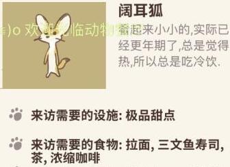 微信动物餐厅阔耳狐来访条件介绍是游戏爱好者今天要给大家带来的资讯,阔耳狐是非常可爱的小动物,但是想要它来到咱们的餐厅,是需要一定条件的,下面和游戏爱好者网一起来看看需要的条件是什么吧!