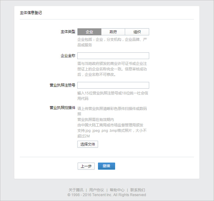 注:若主体信息审核不通过,需要重新提交主体信息,重新审核。