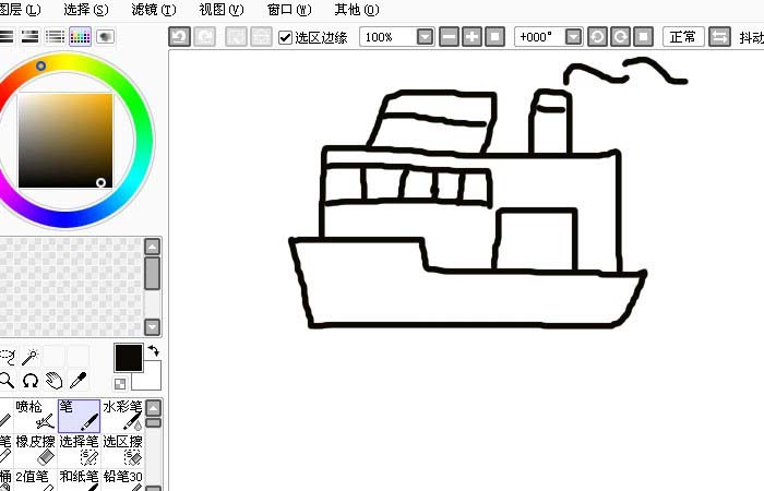 sai绘图软件绘制一个航行中轮船图形的操作教程