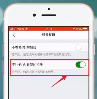 3第3步听语音将【不让他(她)看我的相册】选项打开即可。