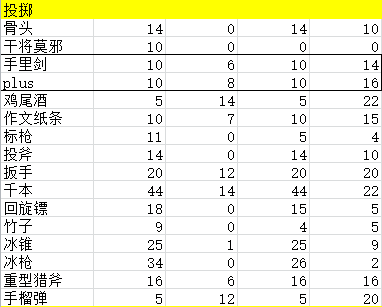 修改总值为10,如果有多个投掷物,就需要2点来缩小角度,其中回旋镖和黑暗料理比较特殊,可能也是因为被看做了霰弹类武器。