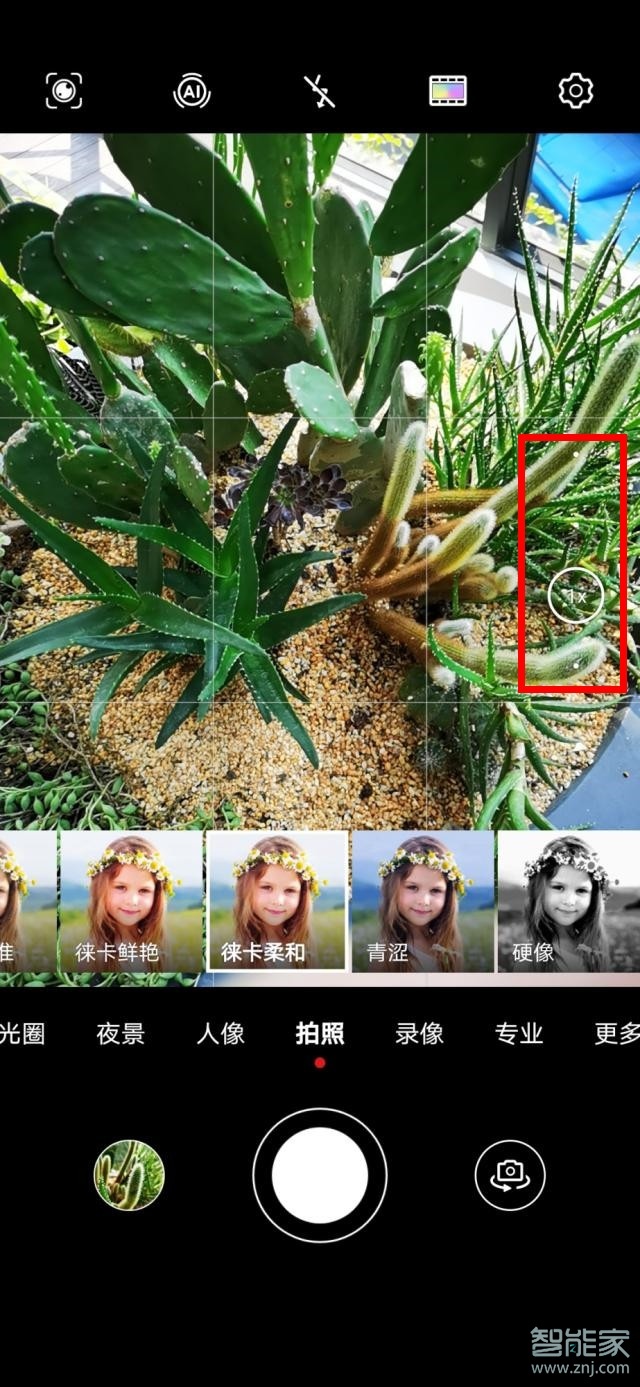 2、进去相机拍照界面之后,可以看到角度默认是1x,点击下面的点。