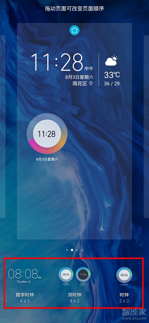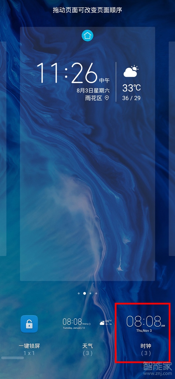 3、选择一种时钟样式即可添加,长按桌面上的时间还可以移动位置。