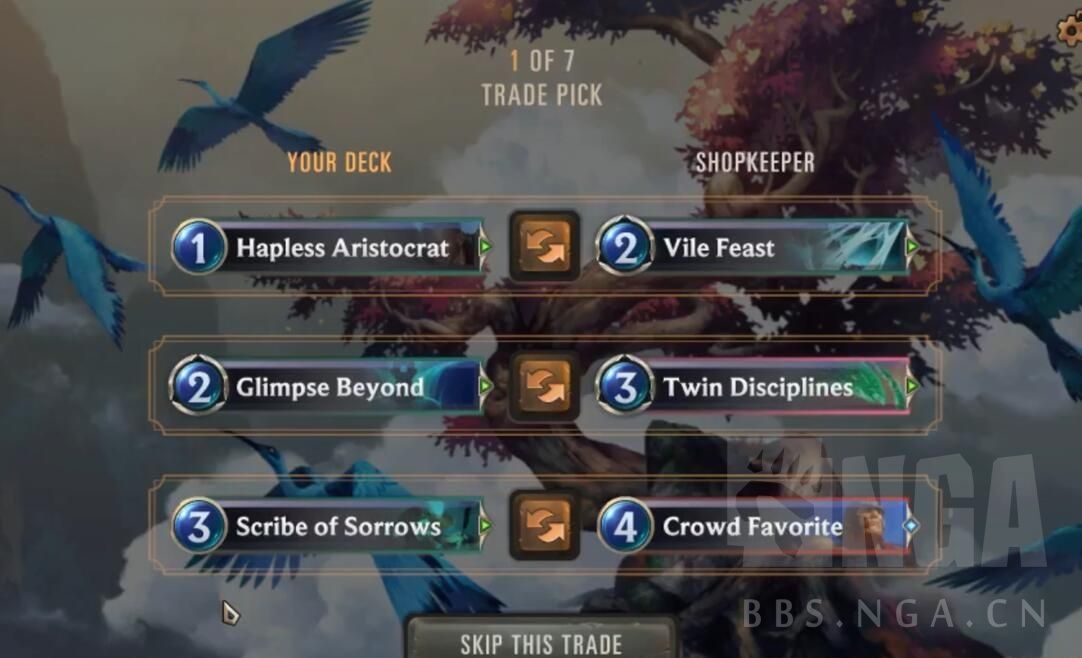 当然如果你目前还拿不定主意,或者能够交换的卡牌都不够好,可以选择跳过本次交换。因为整场远征中你可以进行卡牌交换的次数有上限,因此有时选择跳过交换也是一个好选择。