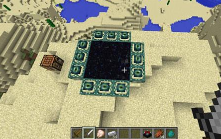放完末地传送门框架以后,为每个框架放上末影之眼,就能激活通往末路之地的传送门了。进入传送门即可前往末路之地。