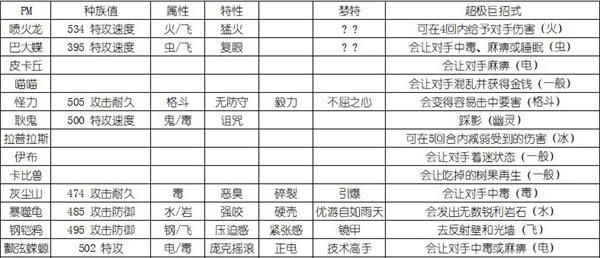在精灵宝可梦剑盾中,一些PM是可以极巨化的,很多玩家还不清楚这些极巨化的宝可梦属性值、种族值、以及招式是什么样的,下面就拉为大家分享一下。