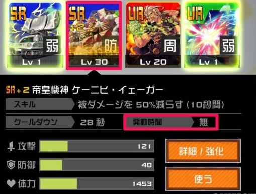 装备一张防卡用来强化打败对手。基础防御能力提高的「忘愛の長女 アレクサンドラ」、摧毁弱点的「反導砲 カノーネ・ファイエル」很有人气。