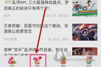 1.首先我们需要打开我们的王者荣耀助手APP,找到首页下方的【聊天】功能,并点击进入。