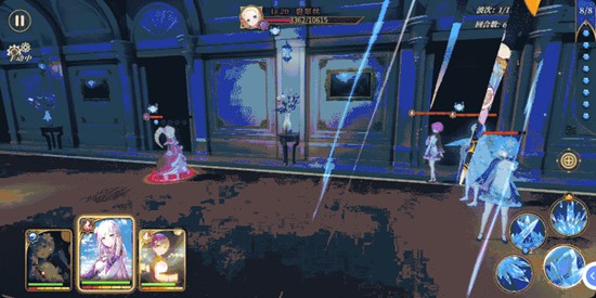 在战斗中,一个角色能携带三张不一样的心之器卡牌。我方回合是可以选定一个敌方角色,然后分别点击我方三个角色的技能,就可以对指定敌方角色进行攻击了,玩过回合制玩法的小伙伴,对于这种玩法应该并不陌生。