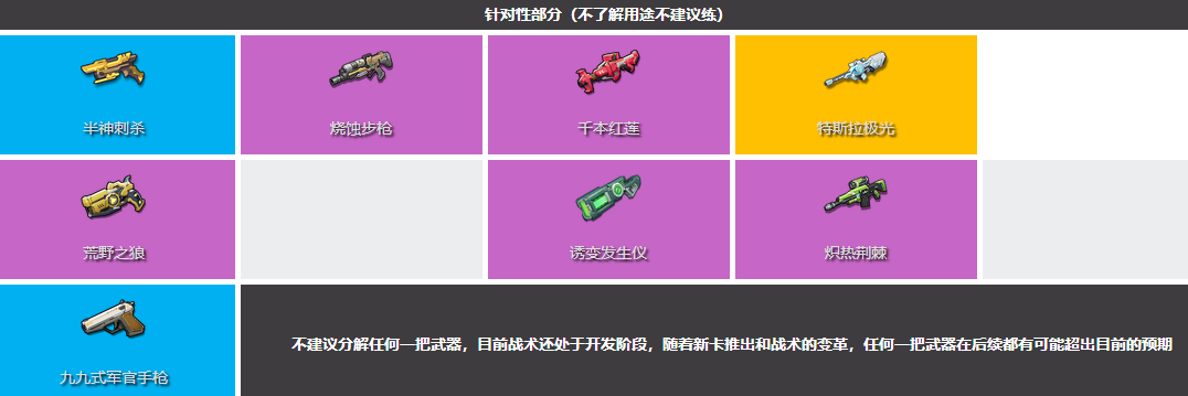 武器搭配本就是对症下药的一件事,节奏榜只能作为一个参考并非什么灵丹妙药,之所以写出排名思路旨在帮助读者了解武器之间的不同之处方便读者对武器进行进一步的精确选择。