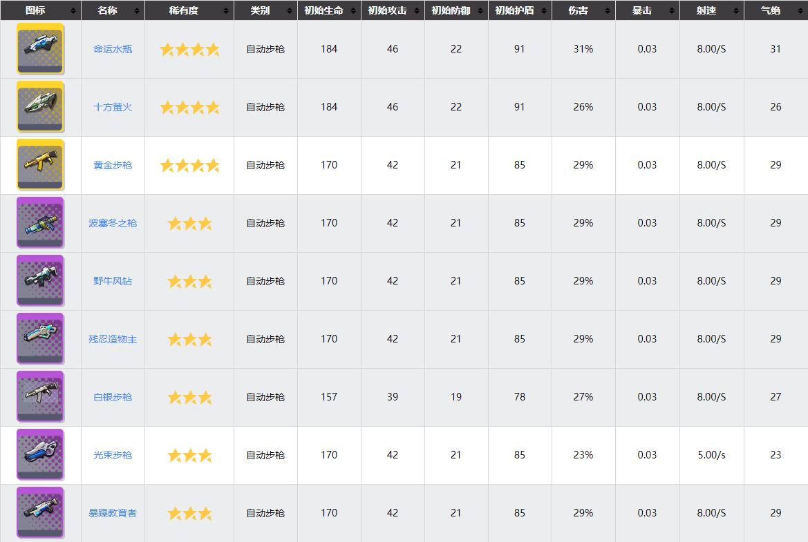 这把武器其实没什么特色,输出数值上在被动正常触发的情况下dps为249.63%平均气绝为232,算是一把低配的白板命运水瓶,这么一把武器之所以在第四位实在是因为其他步枪都不太行,而这把武器至少在输出上有一定的保障。