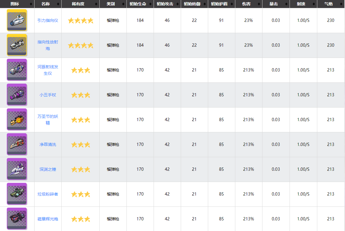 狙击和榴弹由于本身的aoe特性所以整体上对单体输出和气绝都很低不太适合应对单体boss。节奏榜分泛用性部分和针对性部分,其中泛用性部分表示的是大多数时候都可以考虑进行选择,而针对性部分表示的是在一定的情景中可以考虑选择(不了解用途不建议练),未列出的武器表示没有明显的优点其用途还需进一步考察。
