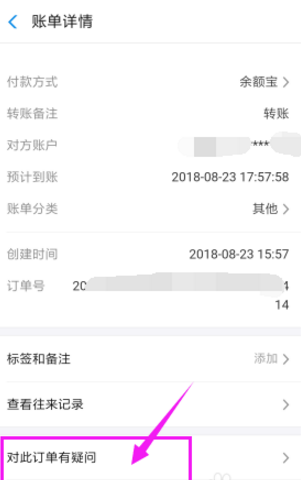 6、想要撤回是不可能的了,但是我们可以在账单上点击查看账单的详情,点击“对此订单有疑问”,然后联系在线客服 寻求帮助。或是发现有问题时,直接拨打支付宝的官方电话寻求帮助。