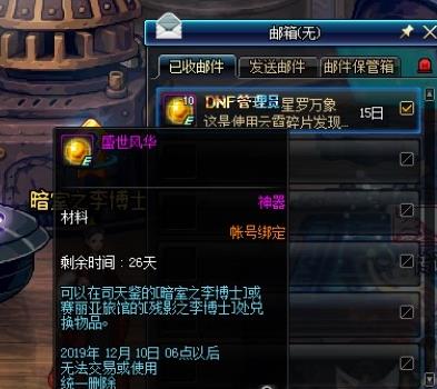 5、在开启星罗万象的第一个区域后,奖励将以邮件的方式发送到角色的邮箱中,同时会显示第二个区域的开启条件。