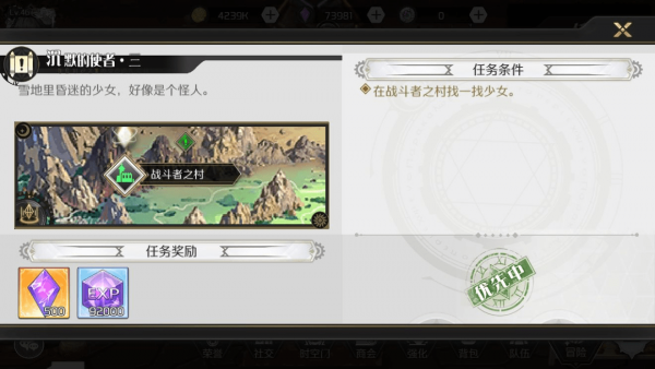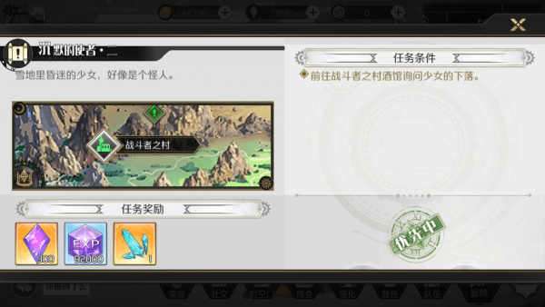进一段cg后继续对话,选择帮助继续任务,这里注意不要点到后面背景的大门了,会进大门触发的对话。对话后会进入战斗,没啥难度,完成后继续对话,任务更新。