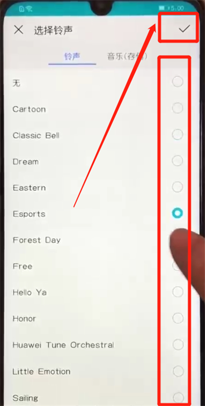 3.选择一个你喜欢的来电铃声,点击勾即可设置完成