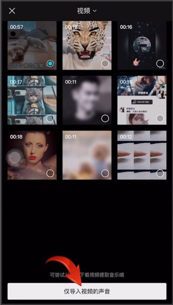 3、选择要提取音乐的视频,点击【仅导入视频的声音】即可。