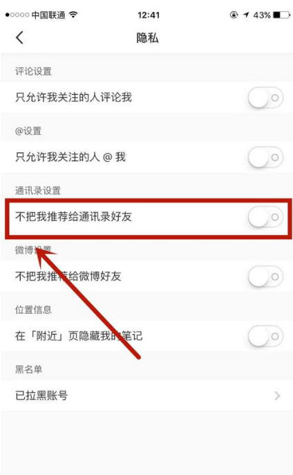 6、将“不把我推荐给通讯录好友”后面的开关打开即可!
