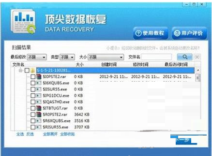 扫描完成后即可看到可以恢复的文件列表了,选择需恢复的文件,恢复即可。