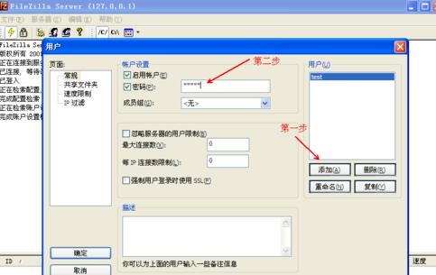 点击【增加】用户,【勾选启用账户】【勾选密码并设置密码】