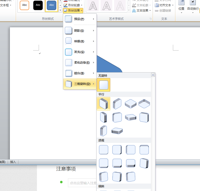 4、形状效果,选择三维旋转,平行,选择三维的观察视角