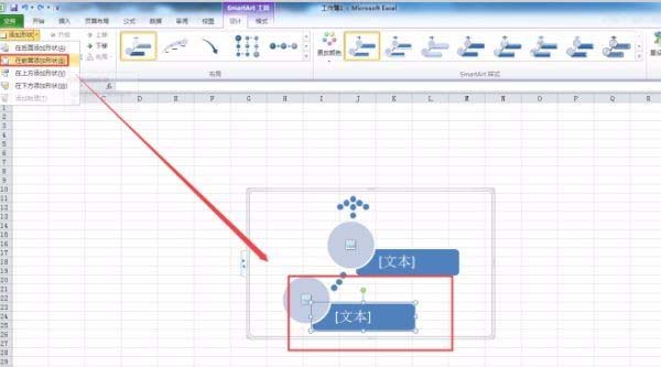 2、选择其中一个图片框,在smartart工具中单击【添加形状】