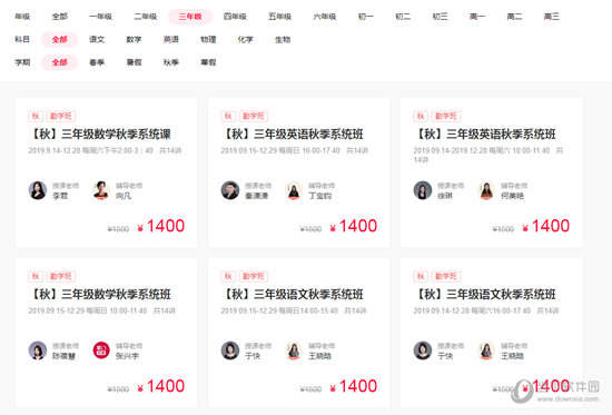 2、用户可以在上方选择符合自己的年级,接着选择科目与学期,每个课程的价格都是差不多的,根据自己的需要与上课时间选择合适的课程,如下图所示: