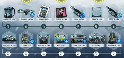 通行证的中有很多奖励都被列举,可见包括有各种枪支、背包、头像框甚至是载具皮肤等等。