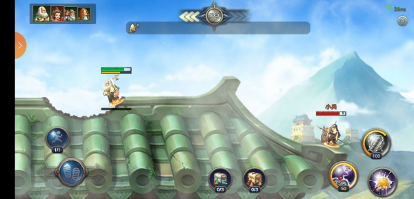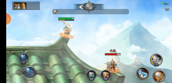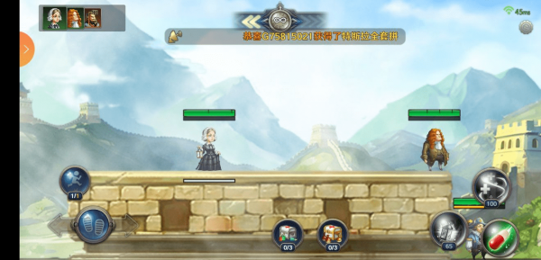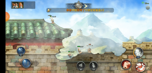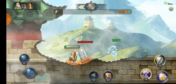 轮到牛顿的回合牛顿也跳下去打,奶妈继续留在上面,嬴政发动技能,奶妈受伤【血赚】