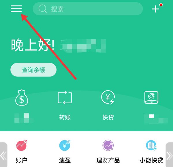 1、点击打开云闪付app,然后点击左上角的三横图标。