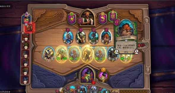 这期间如果拿到了招潮者(112召唤其他鱼人加攻的鱼人)可以留着打工,在刷buff的时候这家伙很容易养到10多攻击,中期战斗力不俗