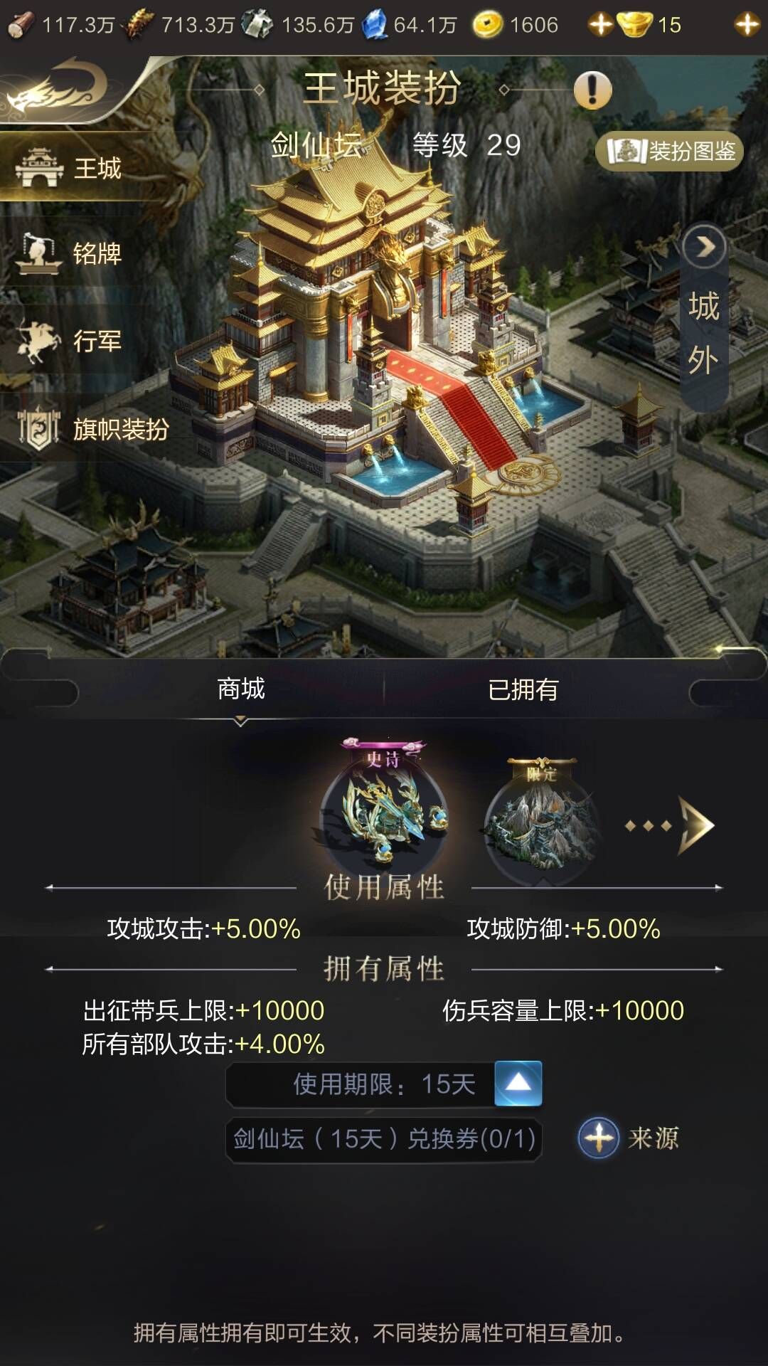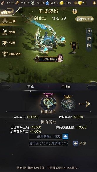 拥有属性:出战带兵上限提升10000、伤兵容量+10000、所有部队攻击+4%。
