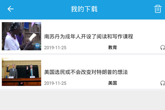 4、进入到我的下载界面,你可以在其中看到之前已下载的音频文件,选择想要收听的内容,如下图所示:
